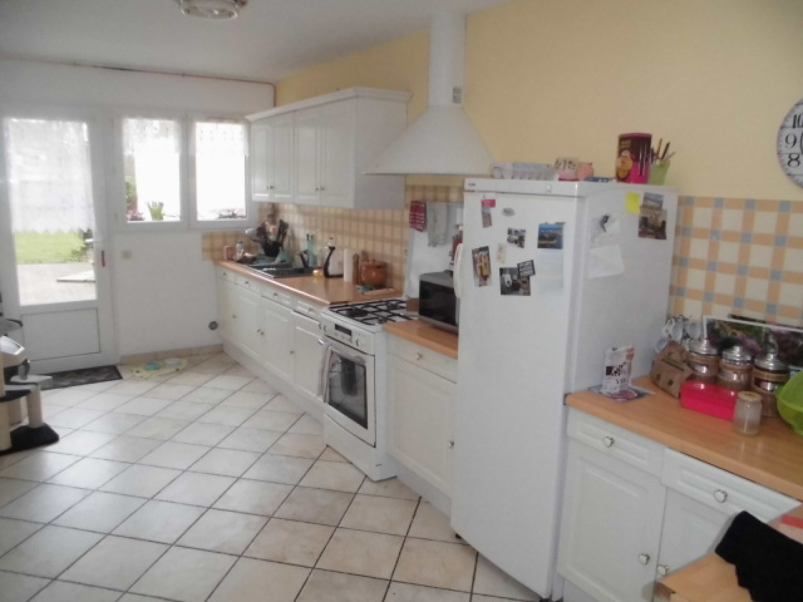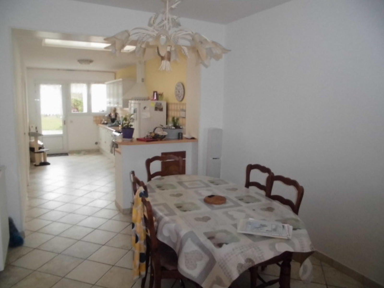 Maison dans rue calme comprenant hall d'entrée, wc séparé, salon, séjour, cuisine aménagée, cellier, salle d'eau.
