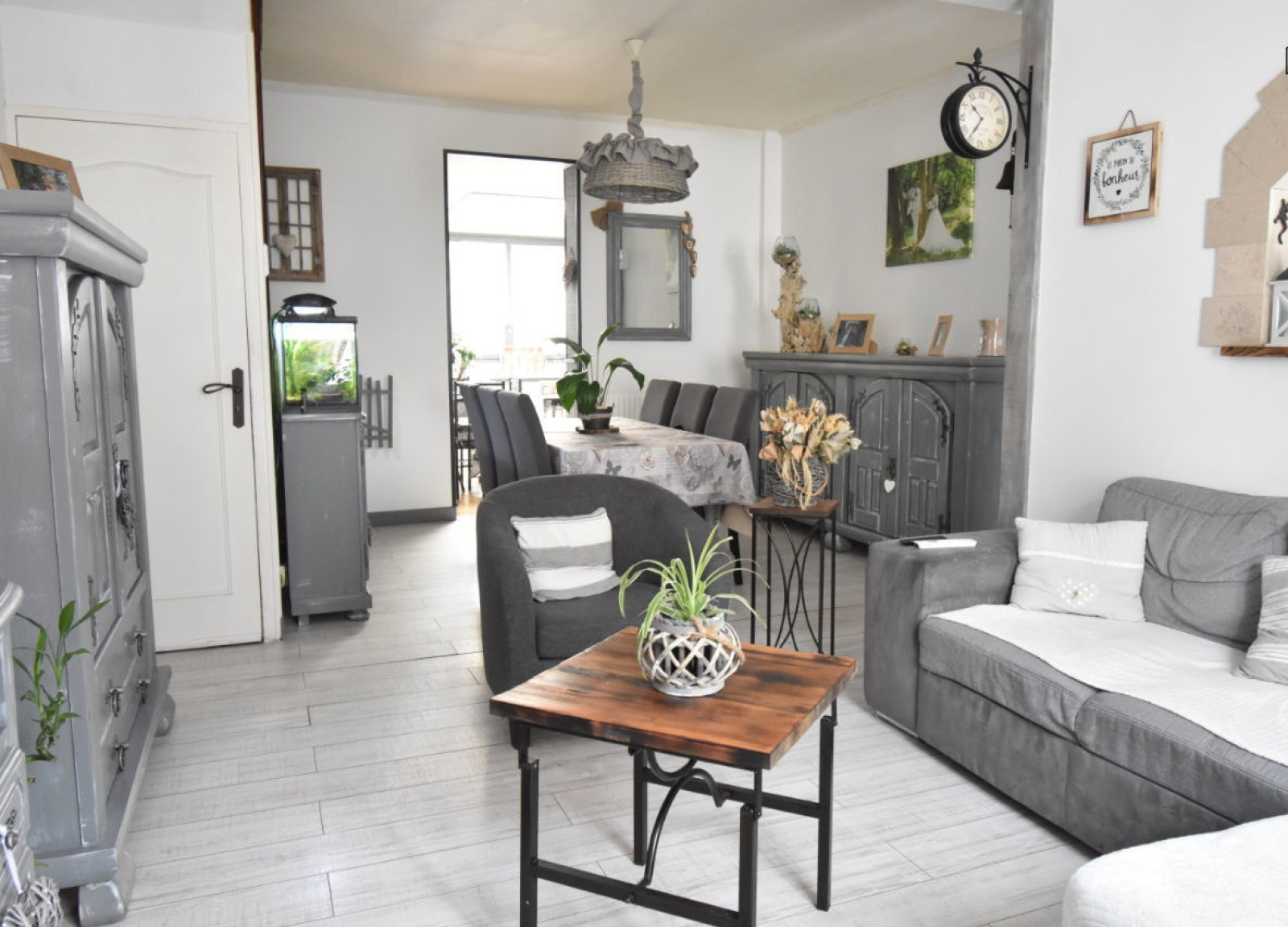 Maison comprenant hall d'entrée, salon, séjour, cuisine aménagée et équipée, salle de bain, wc séparé.