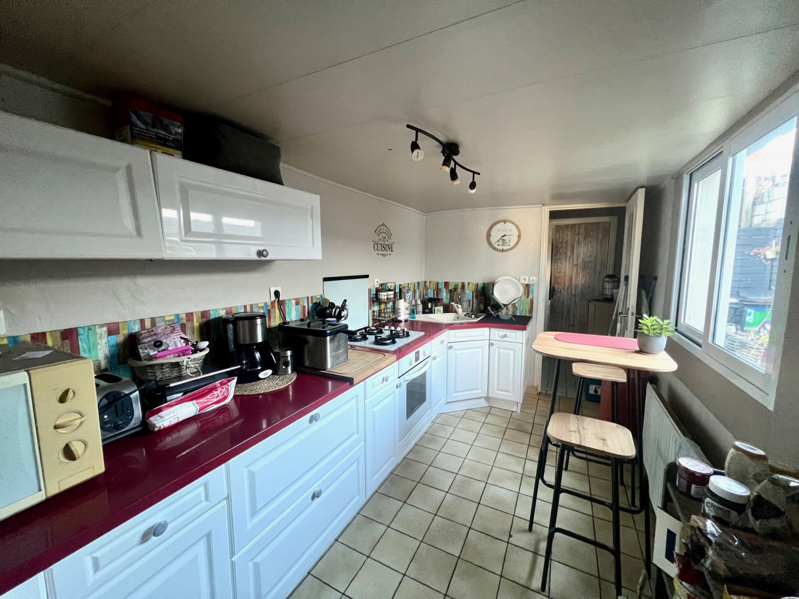 Dans une rue calme, jolie maison comprenant hall d'entrée, salon séjour, cuisine aménagée et équipée, salle de bains et wc séparé.