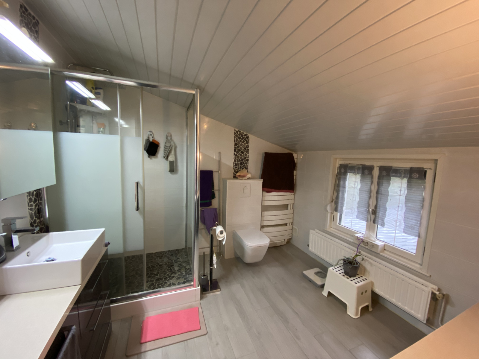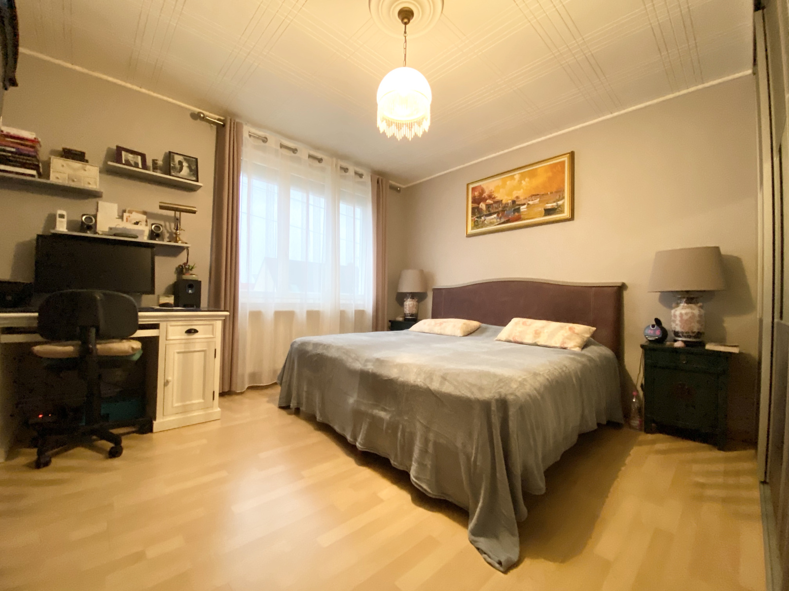 Maison individuelle soignée aux beaux volumes offrant hall d'entrée avec coin lecture, vaste cuisine A&E, salon, salle à manger, 3 chambres et salle d'eau.
