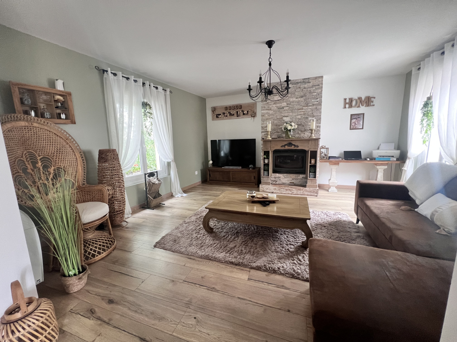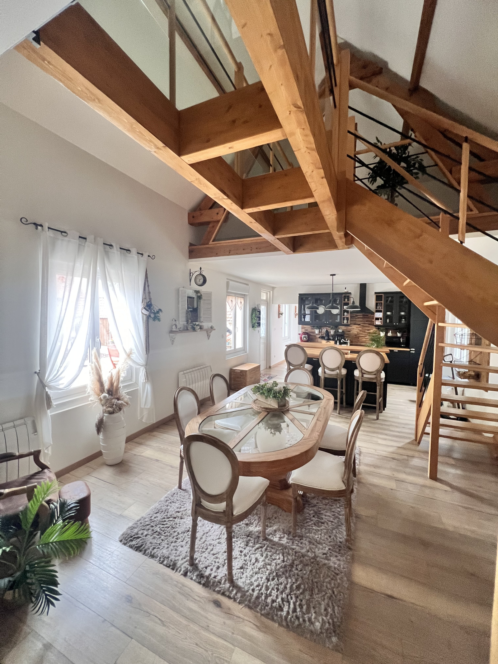 Elle est composée d'une maison à usage d'habitation de 100m² en semi plain pied, totalement rénovée à la décoration parfaite, comprenant au RDC spacieux salon-séjour avec cheminée feu de bois, cuisine ouverte aménagée et équipée, une chambre, une salle de bain avec wc, un cellier et une buanderie. A l'étage superbe passerelle en bois et verre servant les 2 chambres dont une avec un espace salle de bain.