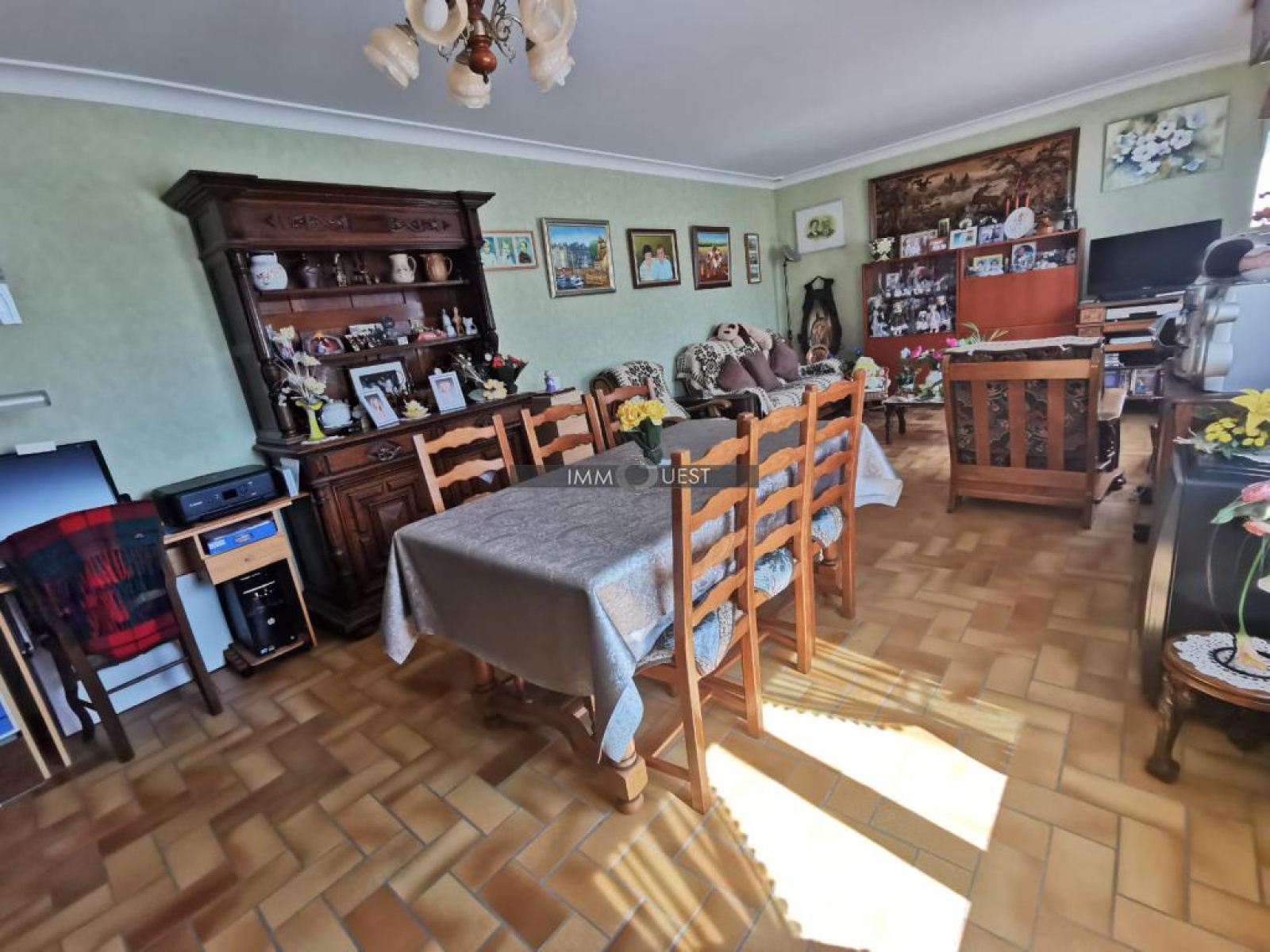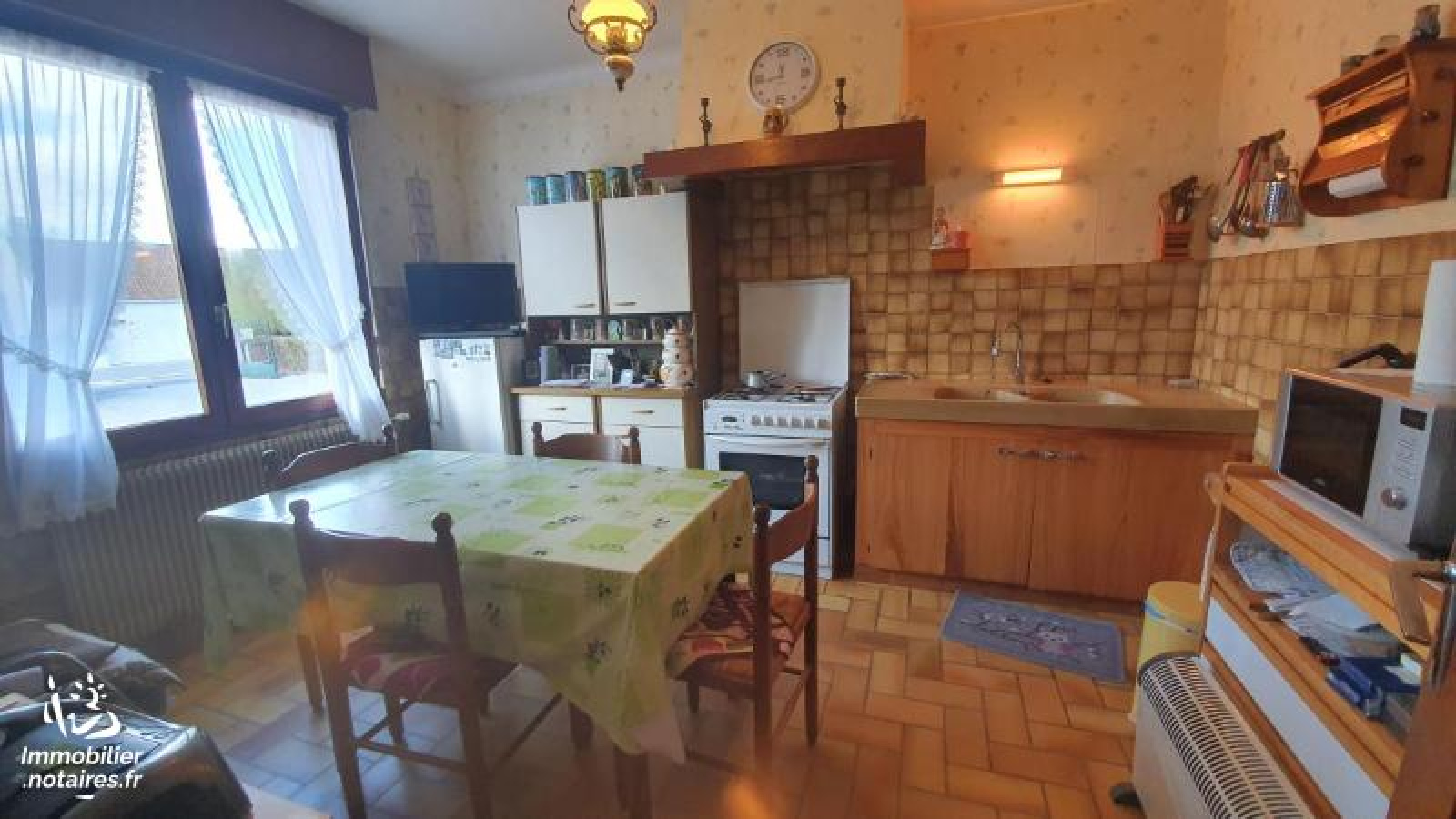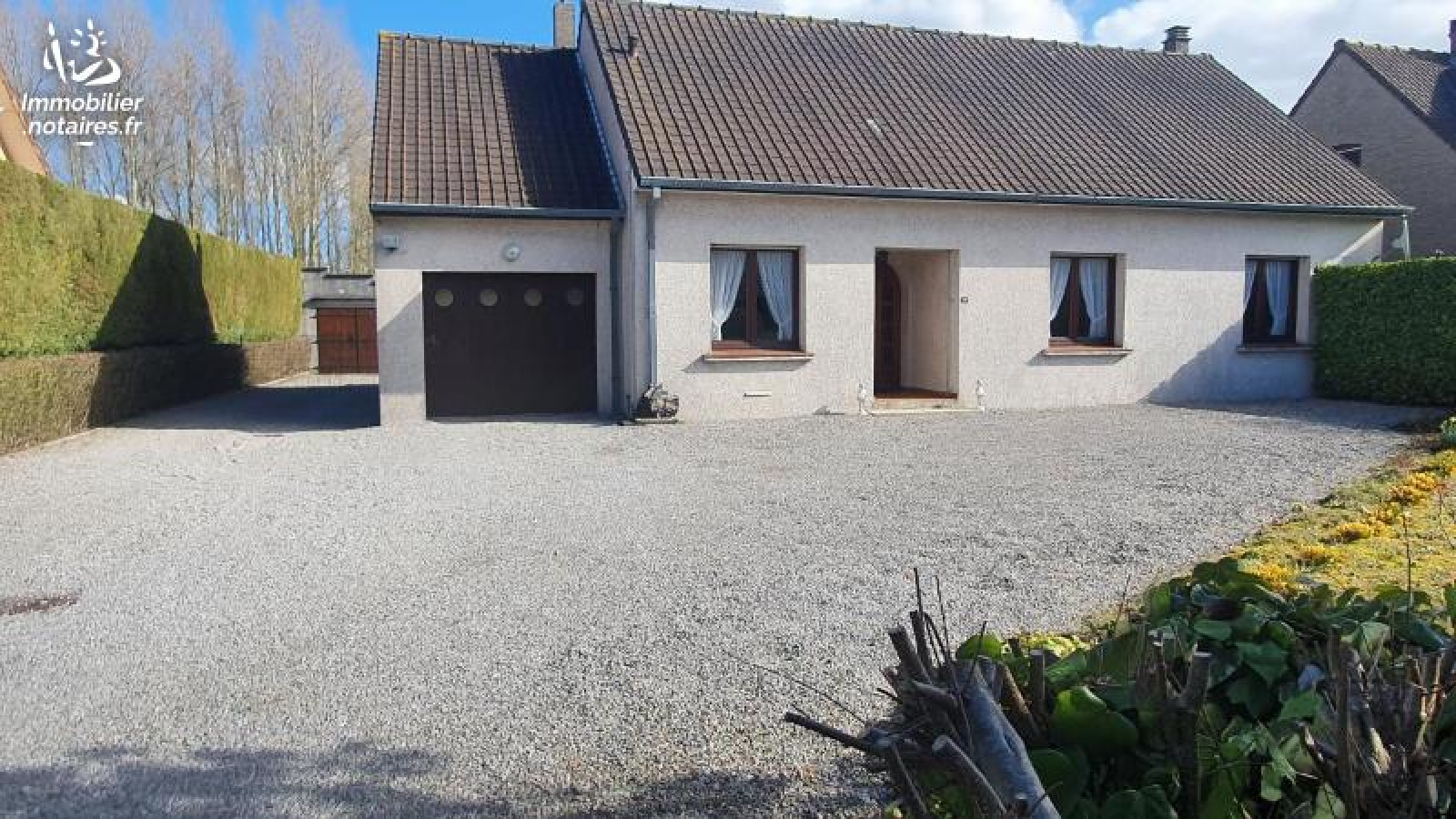 Une maison d'habitation des années 1980 de plain-pied comprenant : hall d'entrée, séjour, cuisine, cellier/buanderie, salle de bains, WC, 2 chambres.