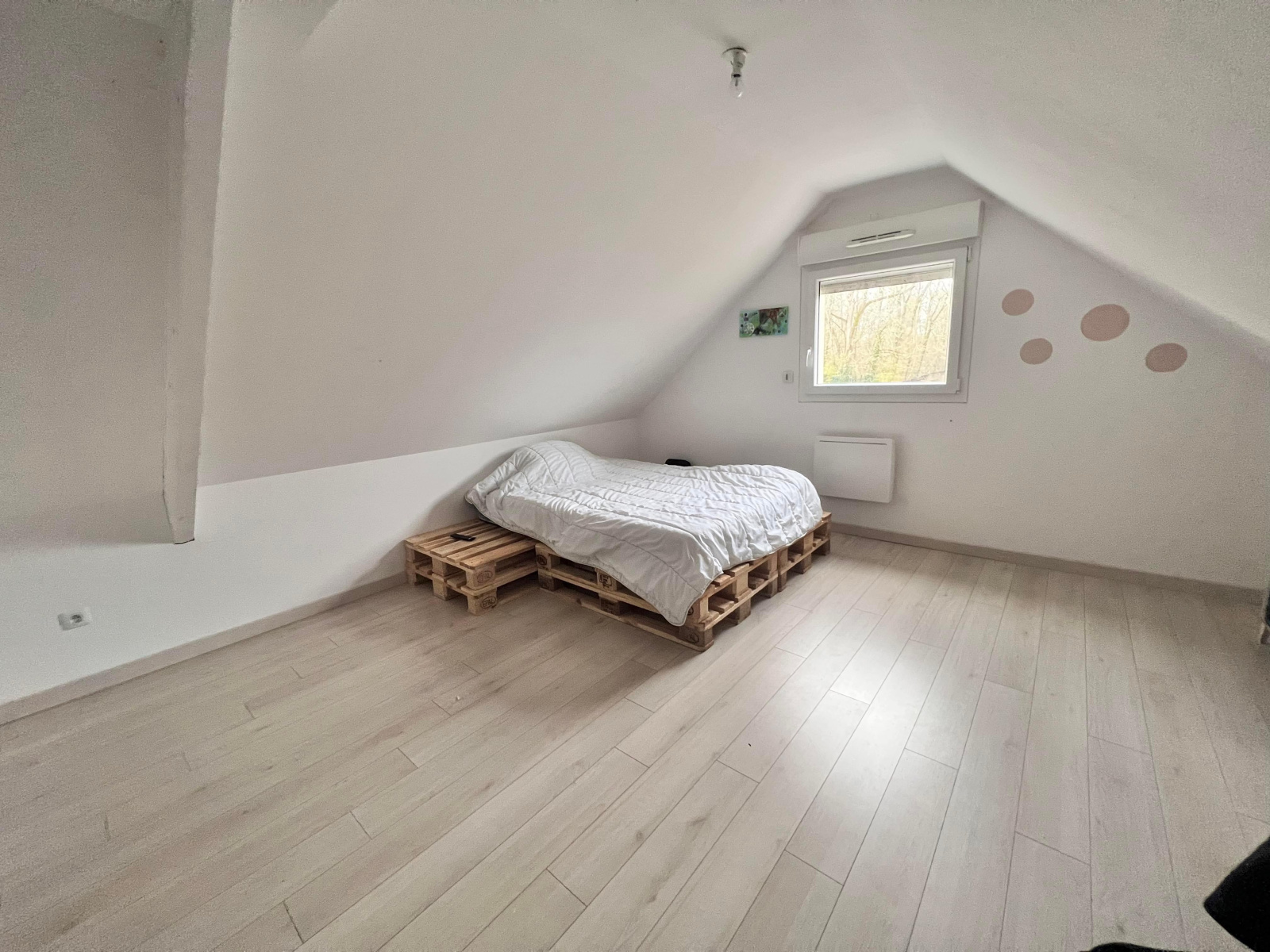 À l'étage, un palier dessert 2 belles chambres de 19,5m2 au sol chacune ainsi qu'un second WC.
