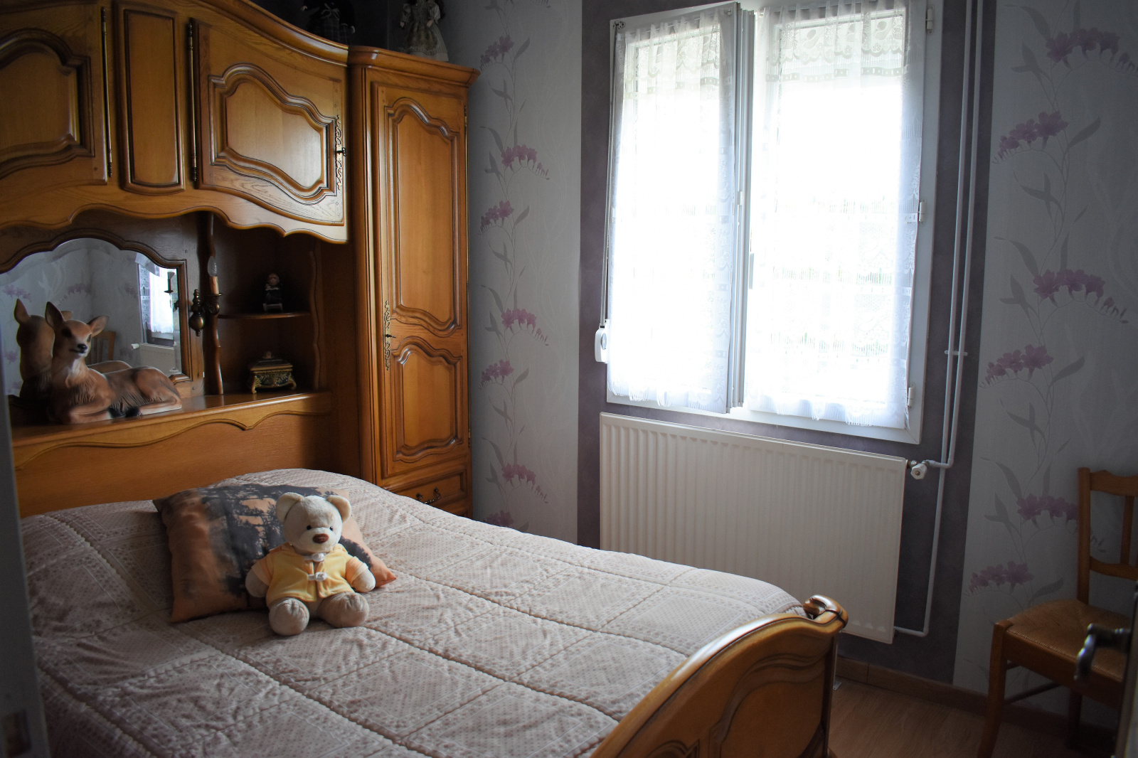 A l'étage, petit grenier aménagé ( possibilité bureau ou chambre enfant), garage